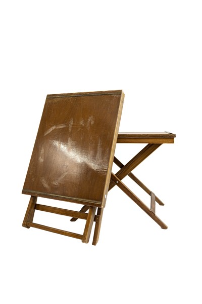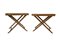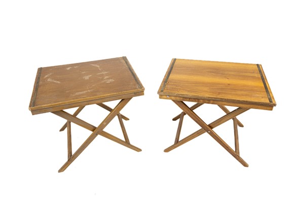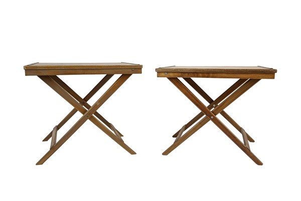 Lot 1639 | Coppia di tavolini pieghevoli in legno e ottone (cm 56x48x46) (difetti)