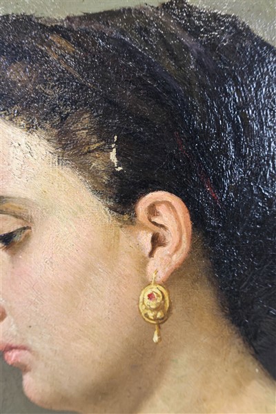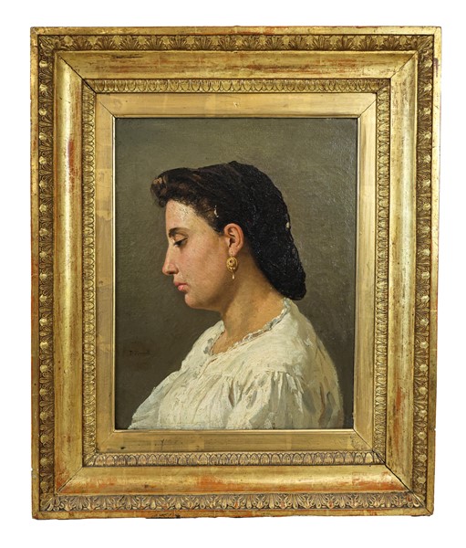 Ignoto del secolo XIX "Ritratto femminile di profilo" olio su tela (cm 49x38)