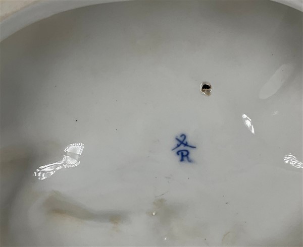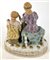 Manifattura tedesca, inizio secolo XX. Gruppo in porcellana policroma con profi