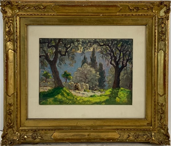 Scuola francese di inizio secolo XX, lotto composto da tre "Paesaggi", olio su cartone (cm max 36 x 48)