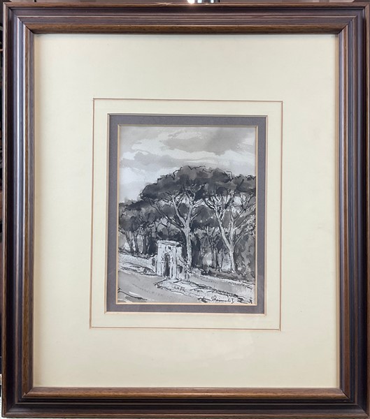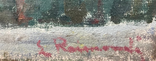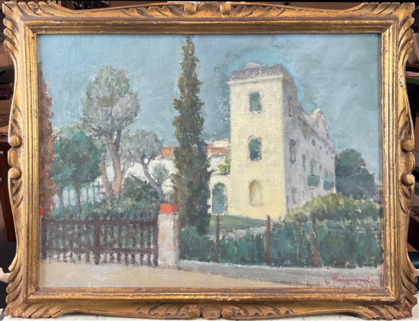 E. Raimondi, Lotto composto da un dipinto ad olio su tela libera e una tecnica