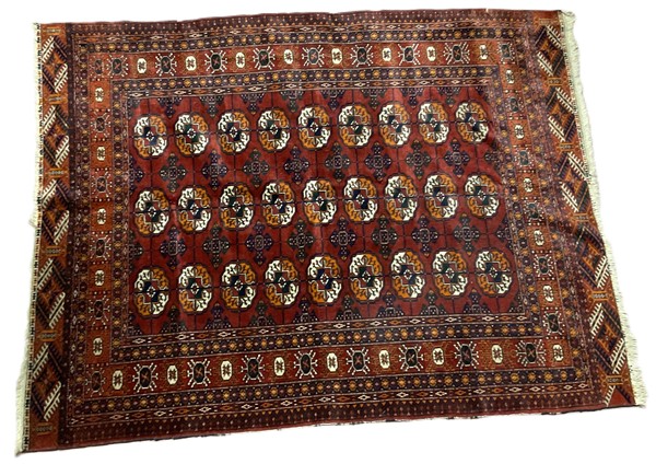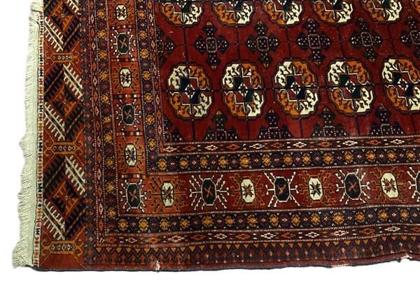 Lot 1669 | Tappeto Boukhara, Turkestan occidentale, secolo XX. Decoro con tre file di Gül
