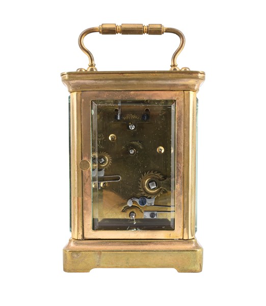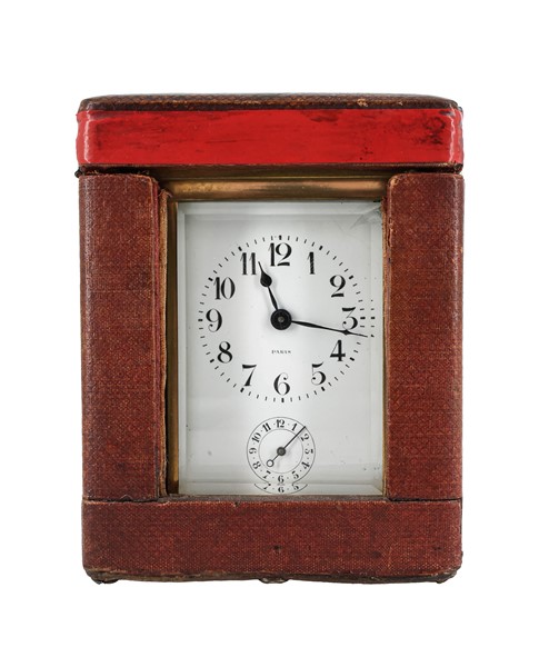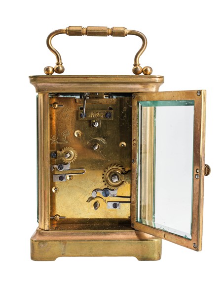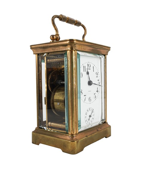 Quadrante a numeri arabi con sveglia, firmato Paris. (cm 8x14x6,5)