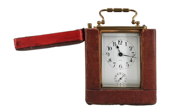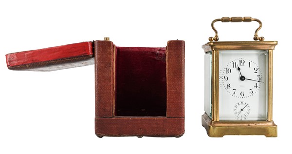 Officier con cassa in ottone e vetri. Quadrante a numeri arabi con sveglia, fir