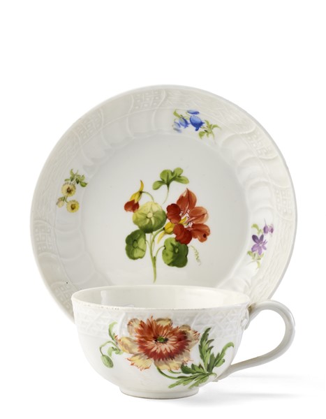 Lot 1688 | Manifattura di Meissen. Tazzina con piattino in porcellana con decoro a rilievo
