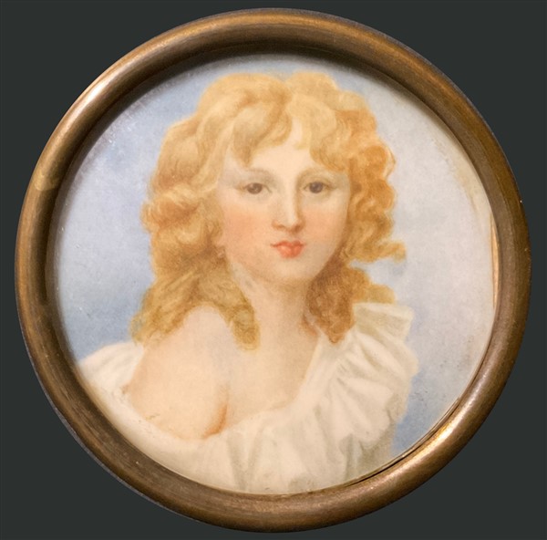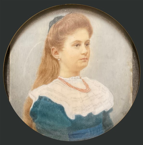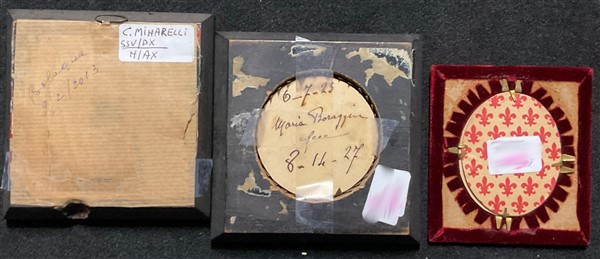 Minarelli, Bistolfi e Borragin. Gruppo di tre miniature raffiguranti figure femminili, in cornici (difetti)