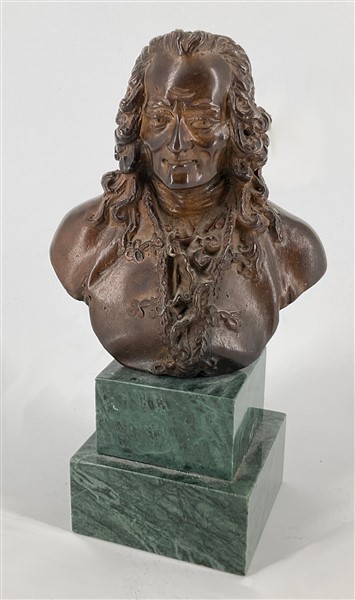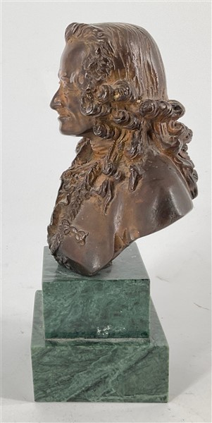 Ignoto del secolo XIX "Busto di Voltaire" scultura in bronzo (h cm 11,5) su b
