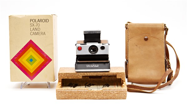 Due cartoni contenenti numerose macchine fotografiche e obiettivi di diversa ma