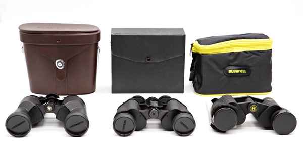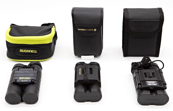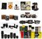 Due cartoni contenenti numerose macchine fotografiche e obiettivi di diversa marca, binocoli ed altri oggetti (difetti)