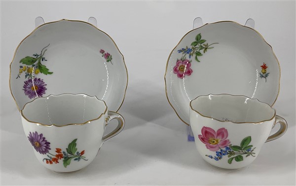 Lot 1707 | Manifattura di Meissen. Coppia di tazzine con piattini in porcellana con fiori