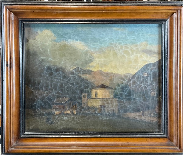 Scuola del secolo XIX, Coppia di Paesaggi ad olio su tela (cm 36x46)