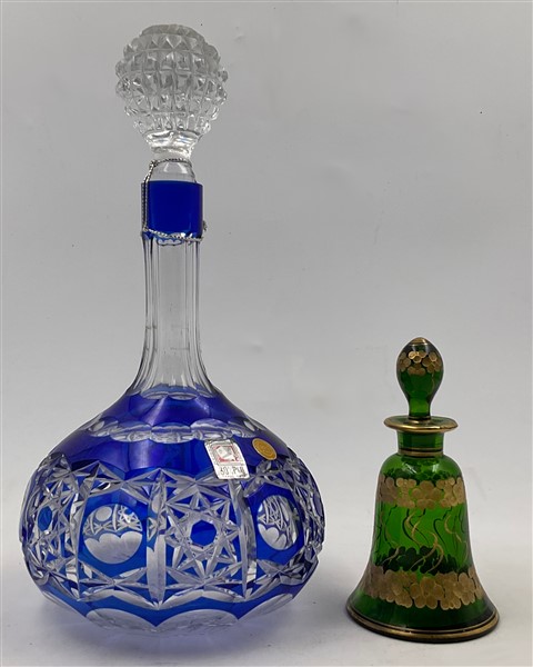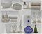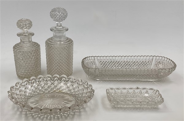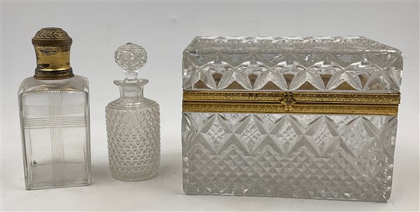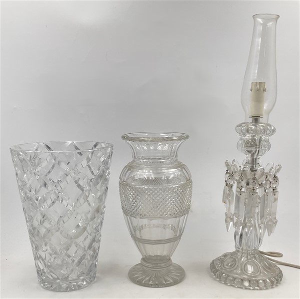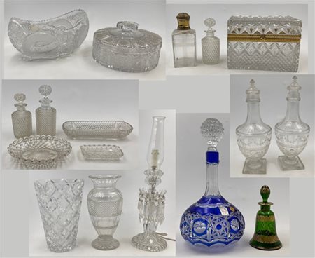 Lotto di due cartoni contenenti numerosi oggetti in cristallo e vetro di manifatture differenti fra cui un portacandele in vetro di Baccarat (difetti)