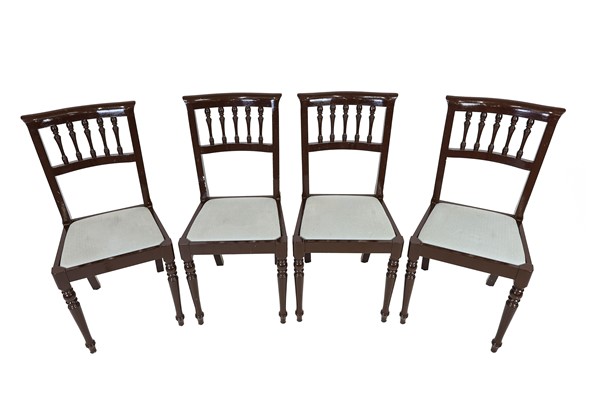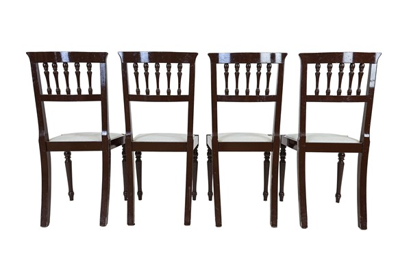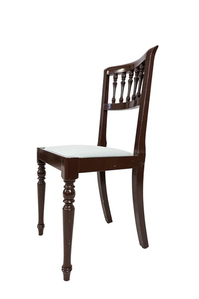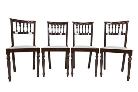 Gruppo di quattro sedie in legno verniciato con schienale traforato (difetti)