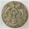 Tondo in pietra scolpita raffigurante coppia di amanti e mascherone (d cm 35) (difetti)