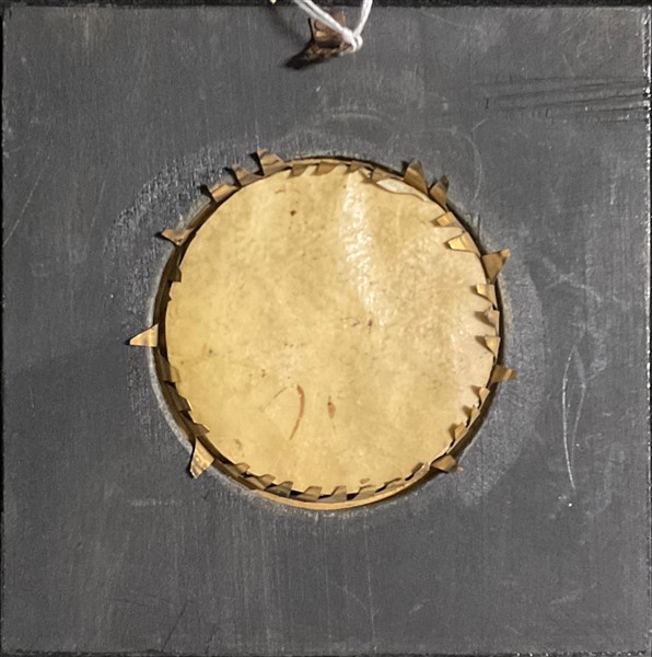 Maestro del secolo XVIII. "Ritratto di gentiluomo con orecchini" olio su cartone pressato (d. cm 8) In cornice