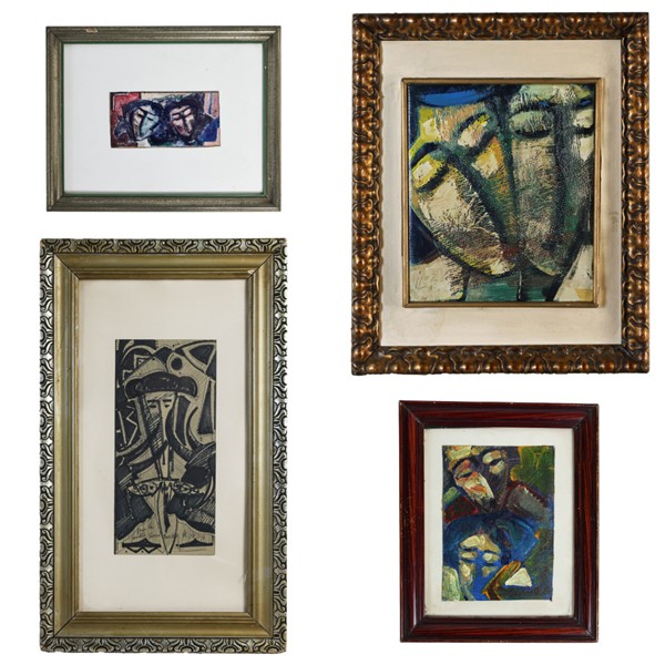 Lotto composto da quattro diversi dipinti raffiguranti volti: due su tela e due