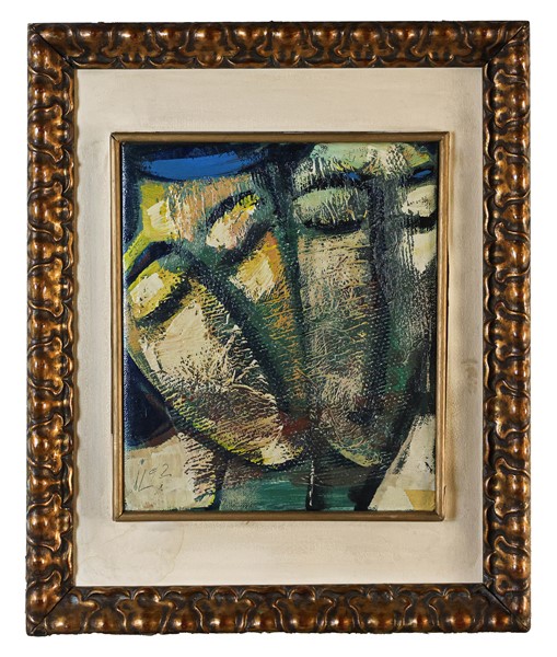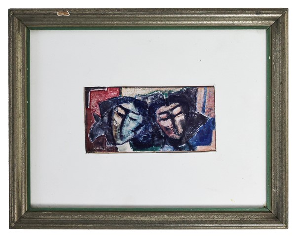 Lotto composto da quattro diversi dipinti raffiguranti volti: due su tela e due su carta, di misure diverse (misura max cm 35x30), uno siglato IL e datato 92, uno dedicato