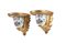 Manifattura della Compagnia delle Indie, Cina, secolo XVIII. Coppia di tazzine in porcellana policroma con decoro Famiglia Rosa montate a mensole in legno intagliato e dorato di recente manifattura (difetti e restauri)