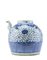 Grande teiera in porcellana bianca e blu decorata con motivi floreali stilizzat