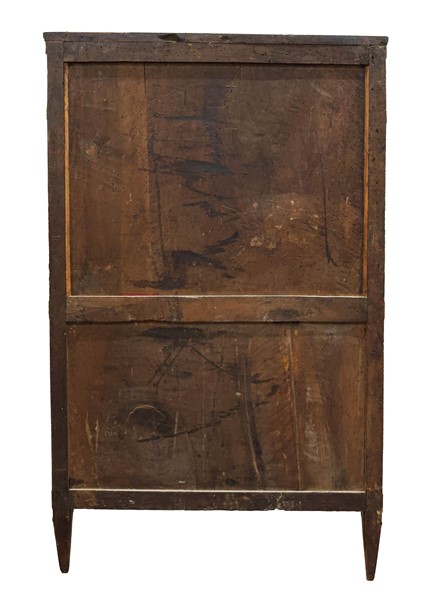 Secretaire lastronato in mogano filettato e intarsiato in legni vari. Cassetto