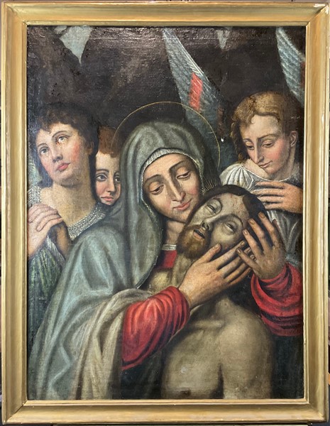 Ignoto Antico dipinto raffigurante "Compianto" olio su tela (cm 87x65) in corn