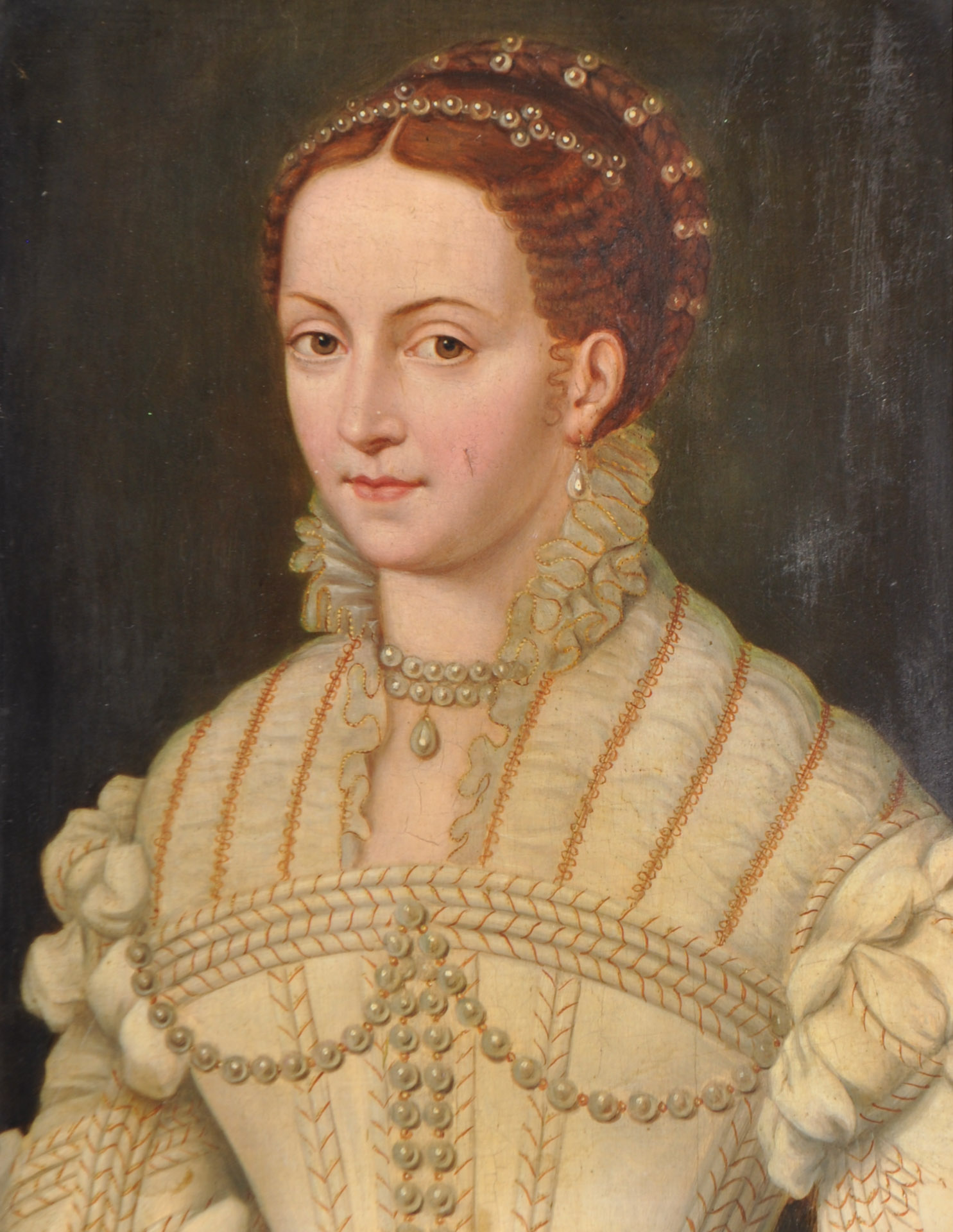 Art des/Stile di François Clouet (1510/30-1572) Bildnis einer vornehmen Dame;Olio su tavola, 31 x 24 cm, incorniciato