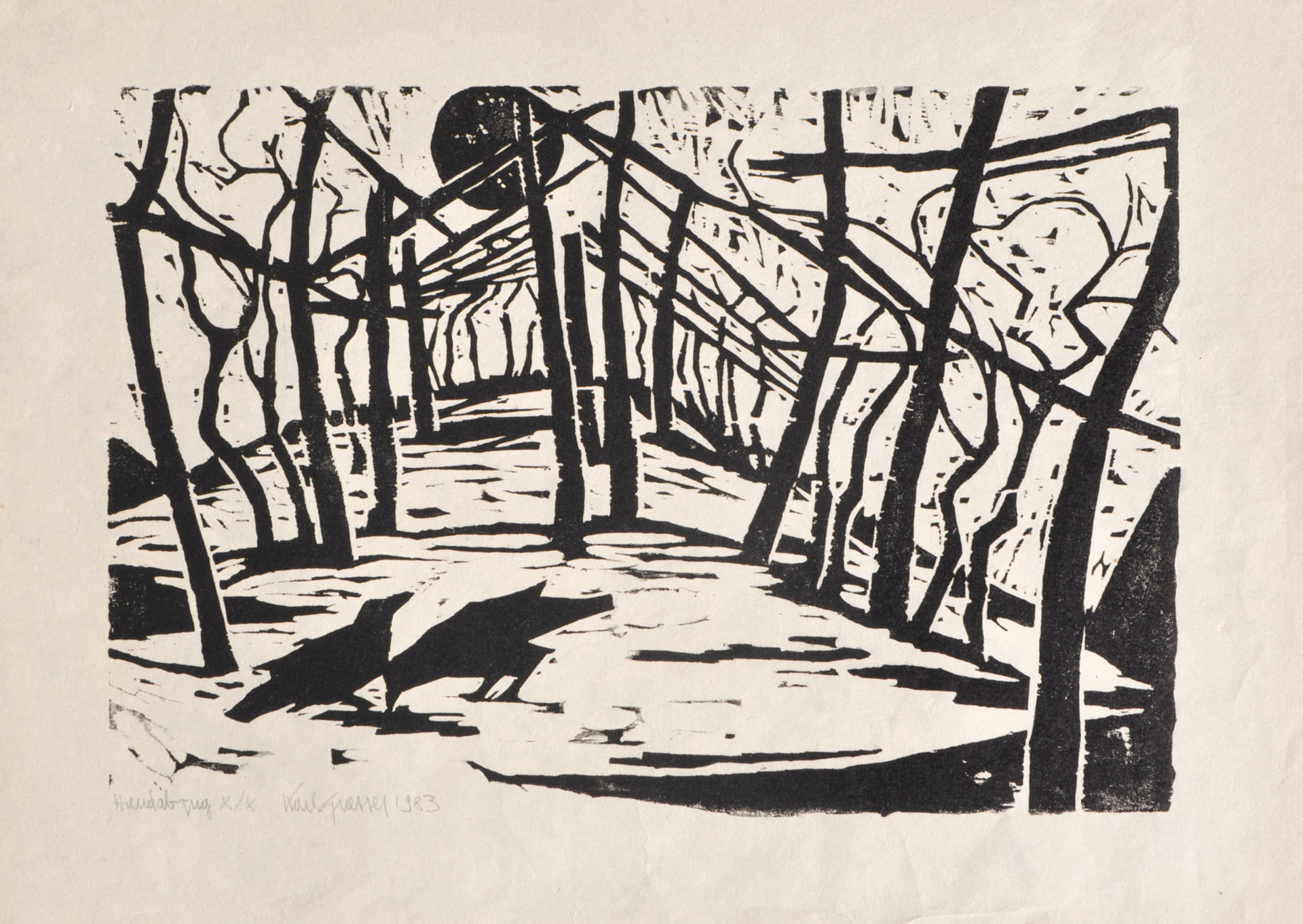 Karl Grasser (Kortsch/Corces 1923 - 2022) Tempesta di marzo, 2002;Xilografia, 44,5 x 65 cm (foglio)