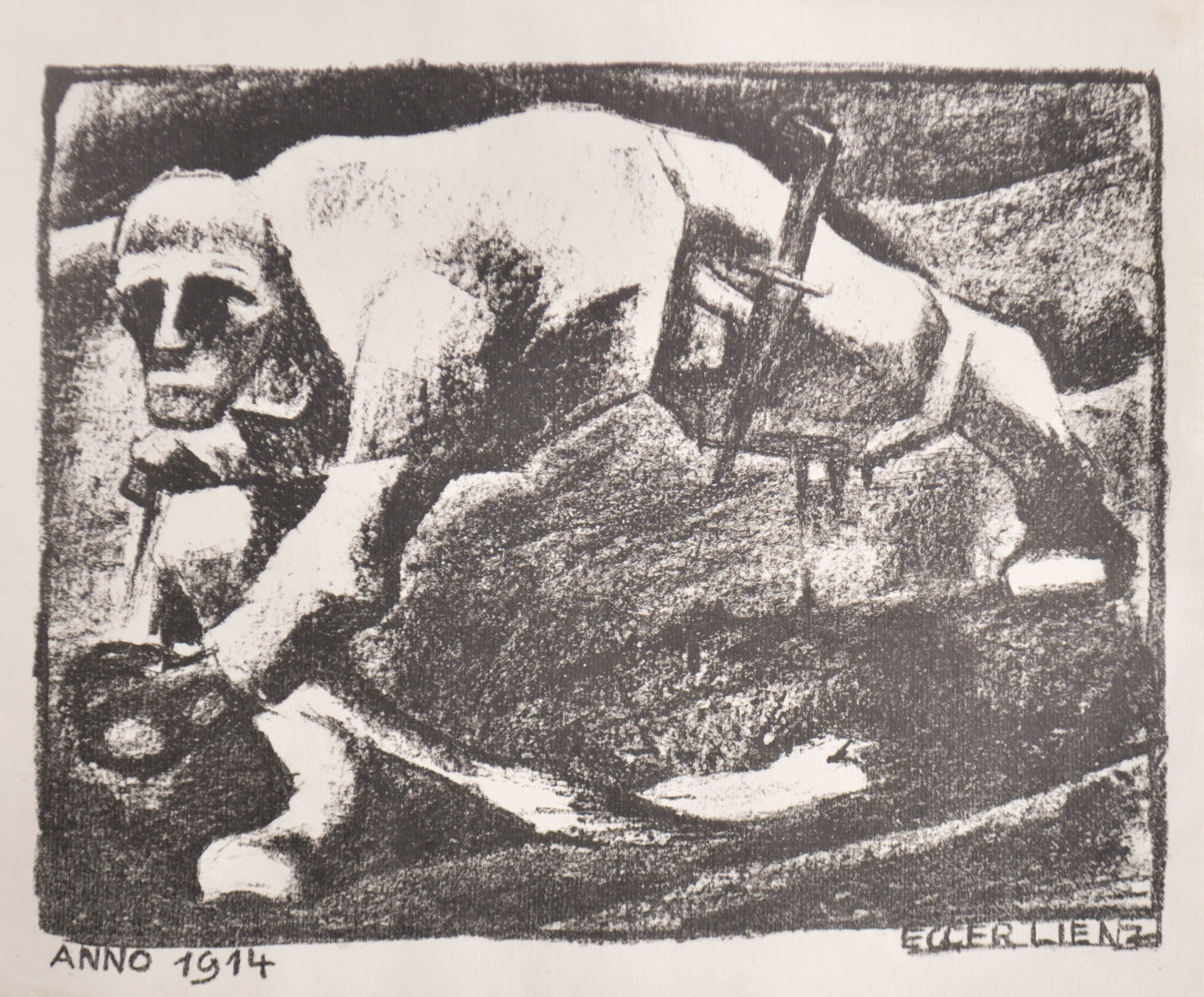 Albin Egger-Lienz (Stribach 1868 - St. Justina bei Bozen/ St. Justina 1926) Anno 1914, 1923;Litografia, 26,5 x 33 cm (immagine), 29,6 x 36,7 cm (foglio)