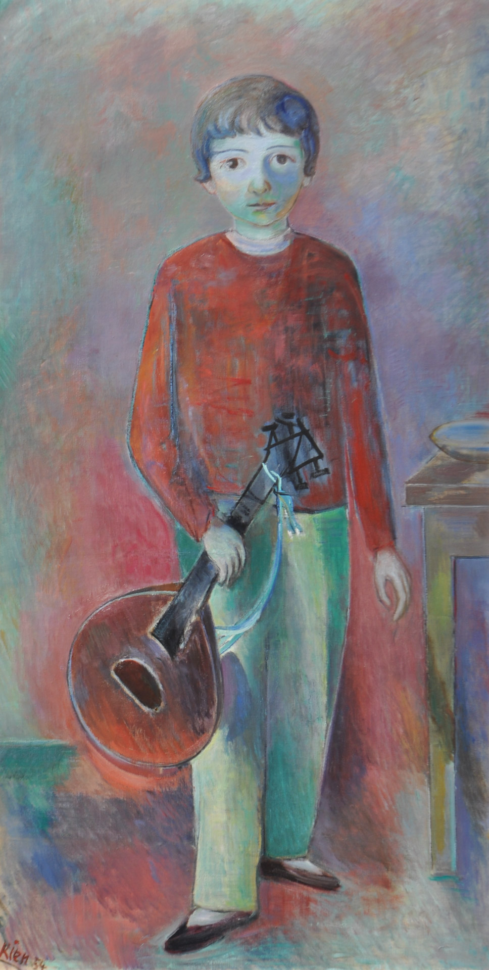 Kien (Josef Kienlechner) (Dessau 1903 - Bracciano 1985) Ragazzo con mandolino, 1954;Olio su tela, 144 x 74 cm, piccolo restauro, in cornice