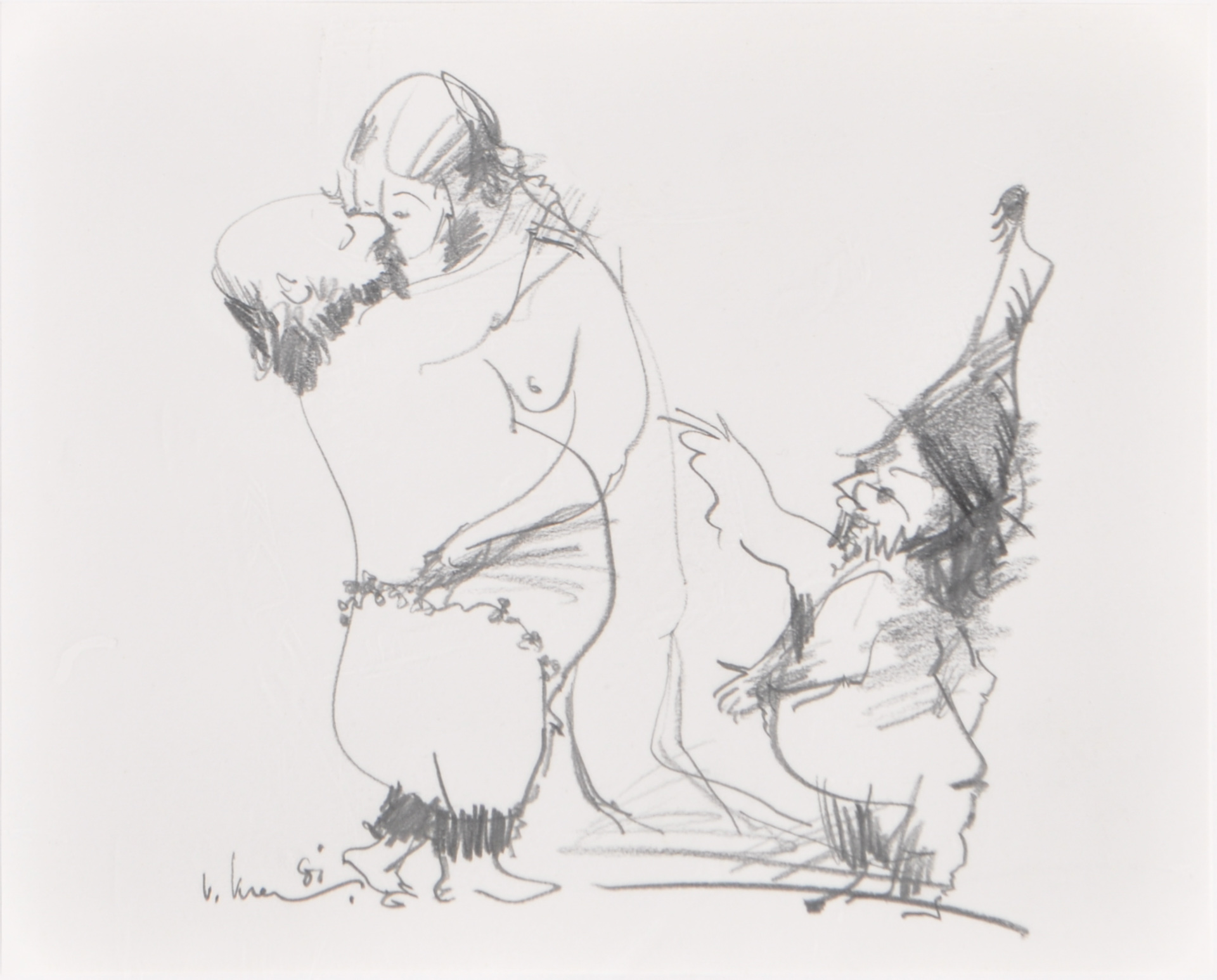 Vladislav Kavan (Baska 1924 - Bozen/Bolzano 2003) Amanti disturbati, 1981;Gessetti neri, 34,5 x 42,5 cm, in cornice