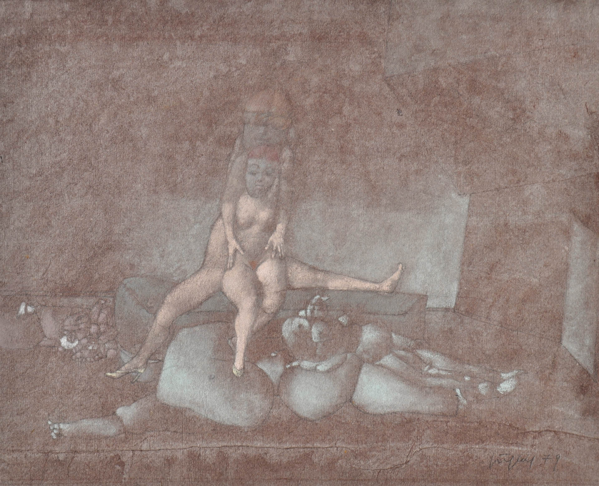 Fritz Fröhlich (Linz 1910 - 2001) Modi strani, 1979;Tecnica mista su carta, 35,7 x 42,5 cm
