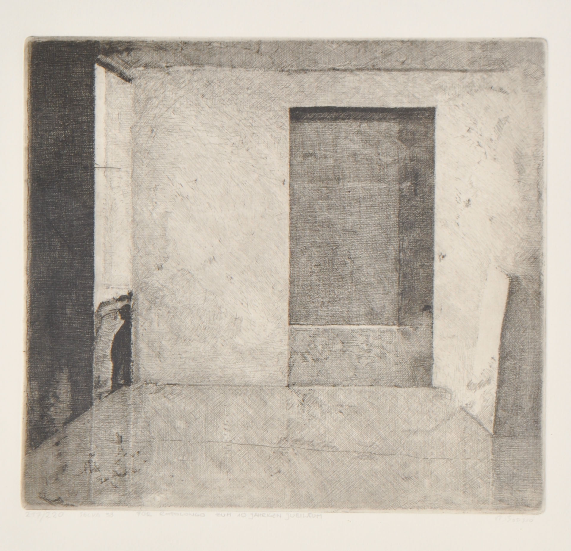 Robert Bosisio (Truden/Trodena 1963) Interno, 1998;Acquaforte, 27,5 x 30,5 cm (lastra), in cornice
