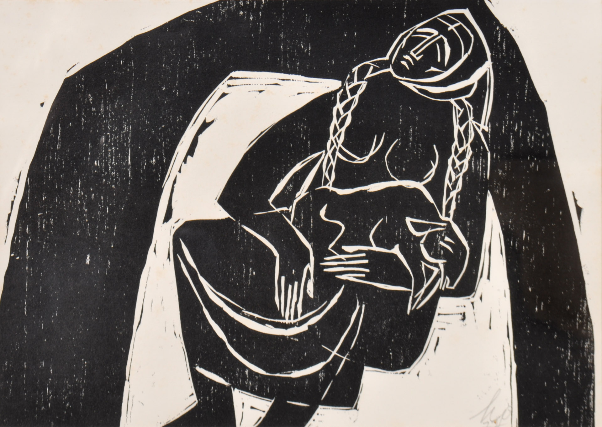 Heiner Gschwendt (Bozen/Bolzano 1914 - Klausen/Chiusa 2011) Madre con bambino, 1977;Xilografia, 19,7 x 27,5 cm