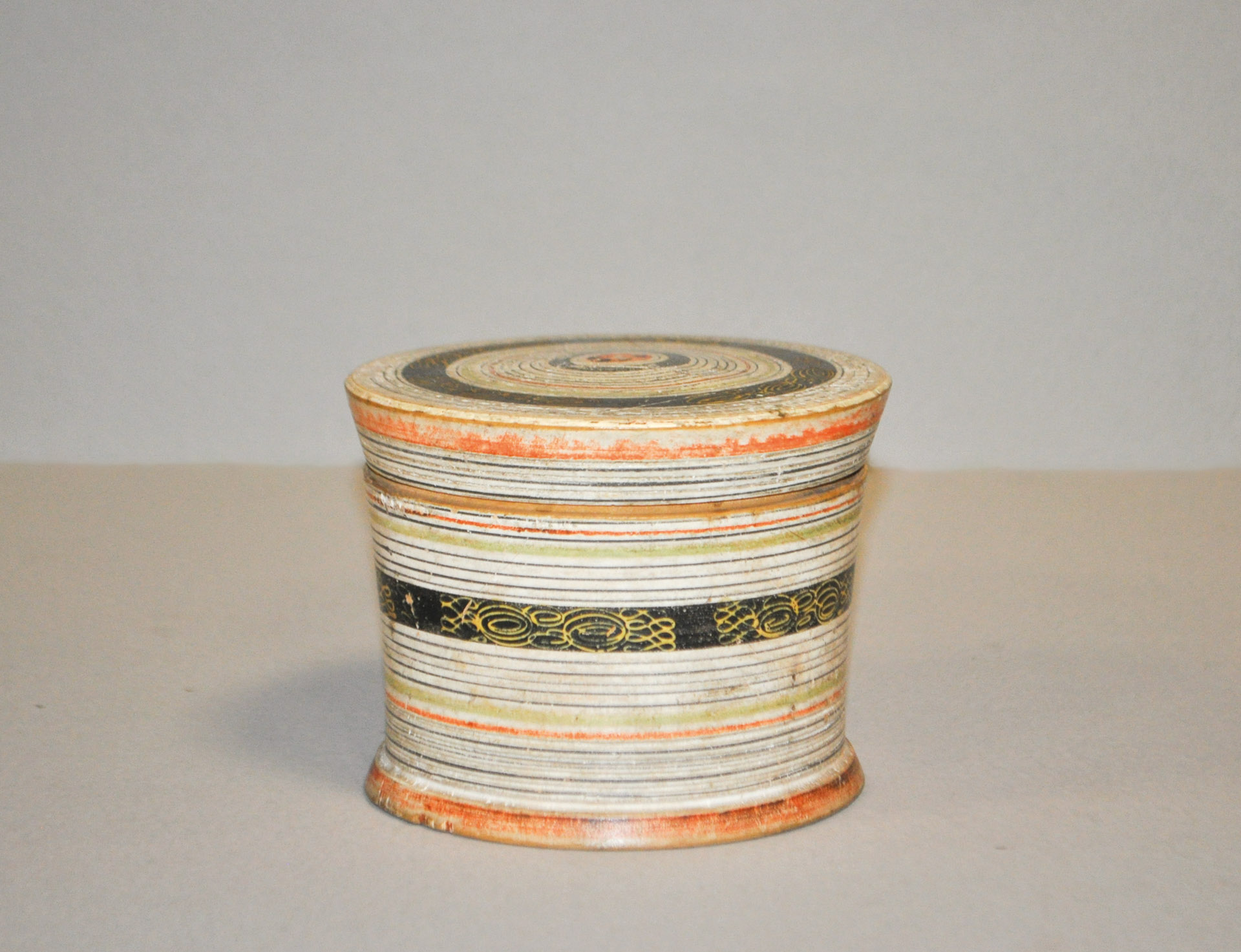 Anonym/anonimo Bemalte Holzschraubdose (Gotldose), Tirol, 2. Hälfte 19. Jh.;Altezza 9,7 cm, segni di usura