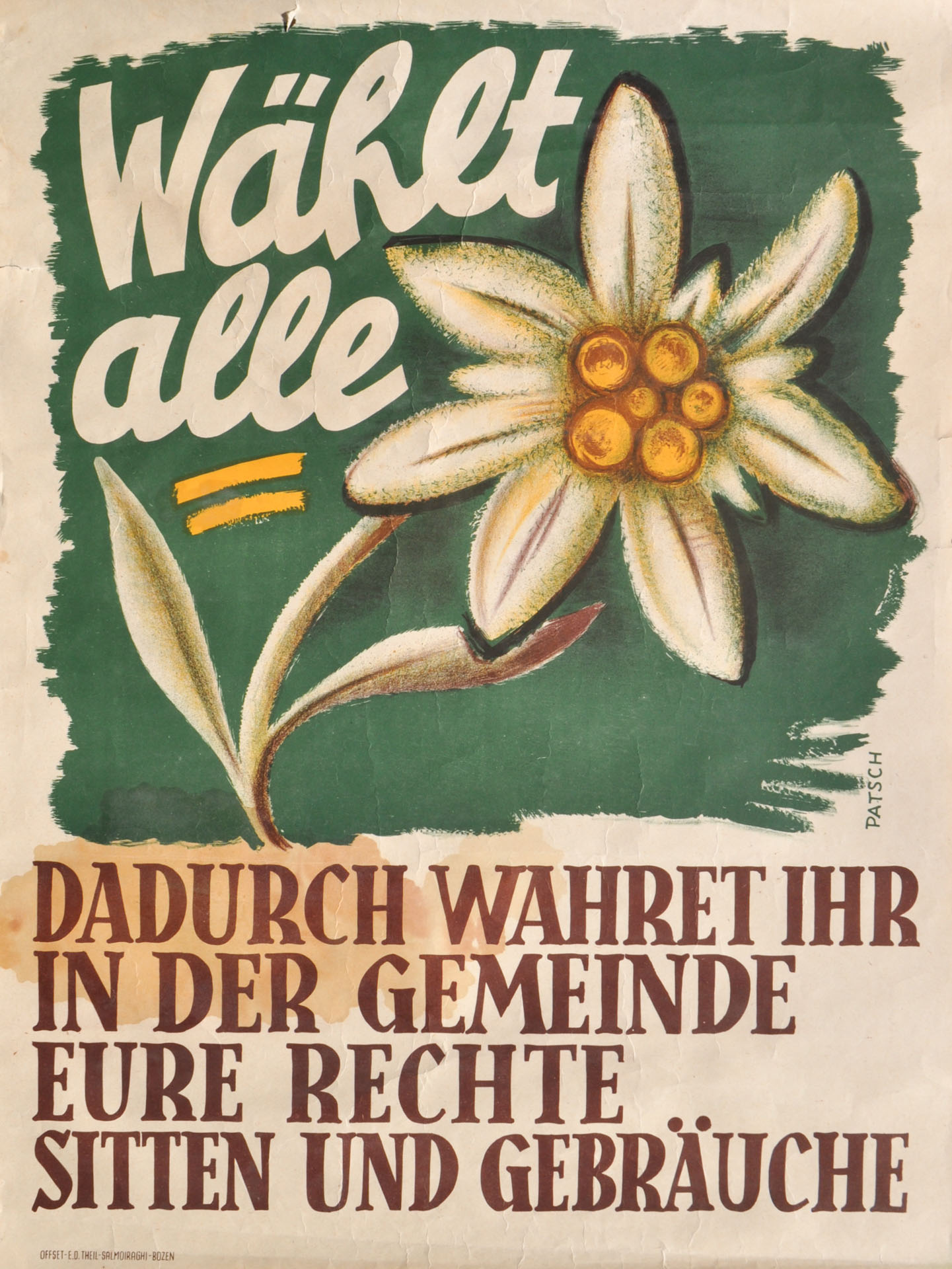 Luis Patsch (Bozen/Bolzano 1906 - 1982) Manifesto "Wählt alle Edelweiß", 1955...