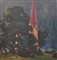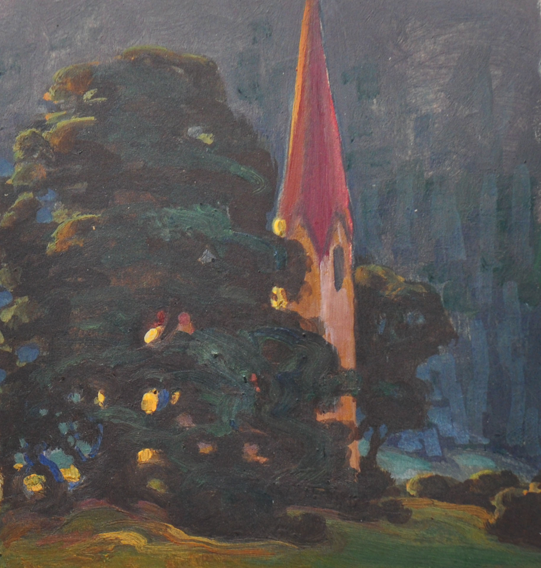 Hugo Grimm (Feldkirch 1866 - Kitzbühel 1944) Fienile presso Heiligwasser/Igls, 1918 ca.;Tempera su carta, 12,8 x 19,1 cm