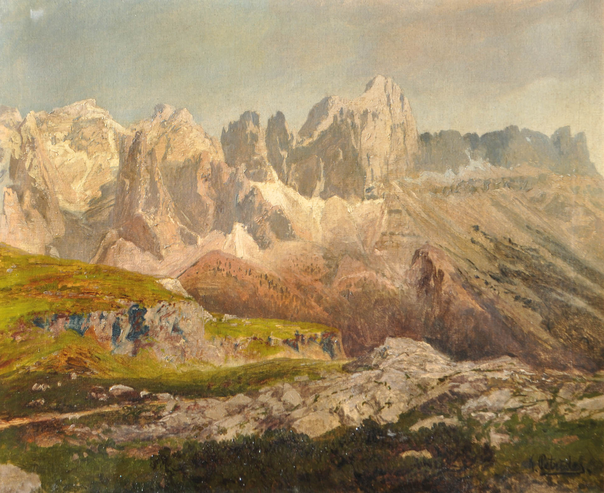 Konrad Petrides (Wien/Vienna 1864 - 1944) Catinaccio vicino a Bolzano;Olio su tela, 42,5 x 53 cm, in cornice