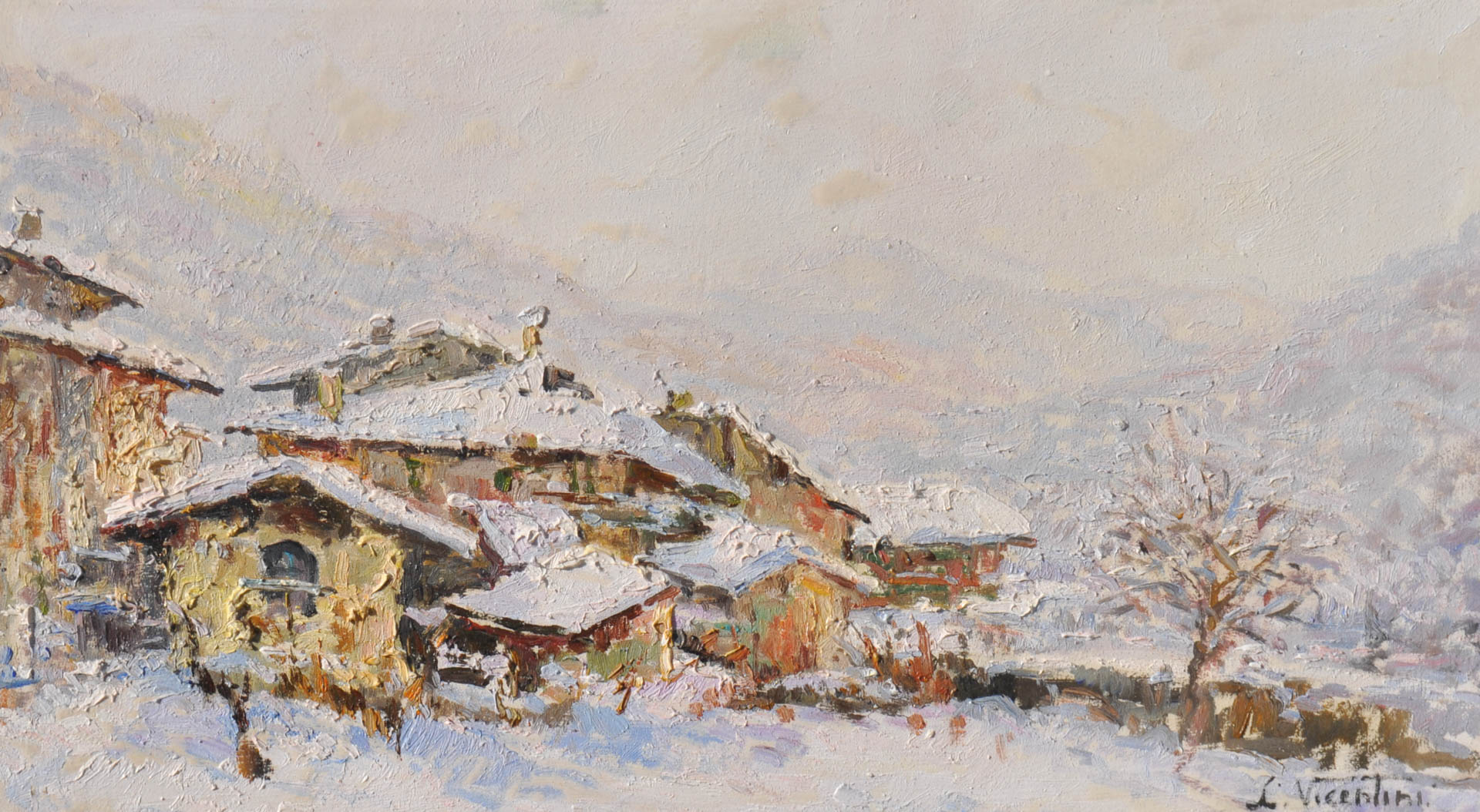 Luigi Vicentini (Pomarolo 1901 - Nomi 1970) Case a Pedrazzano;Olio su...