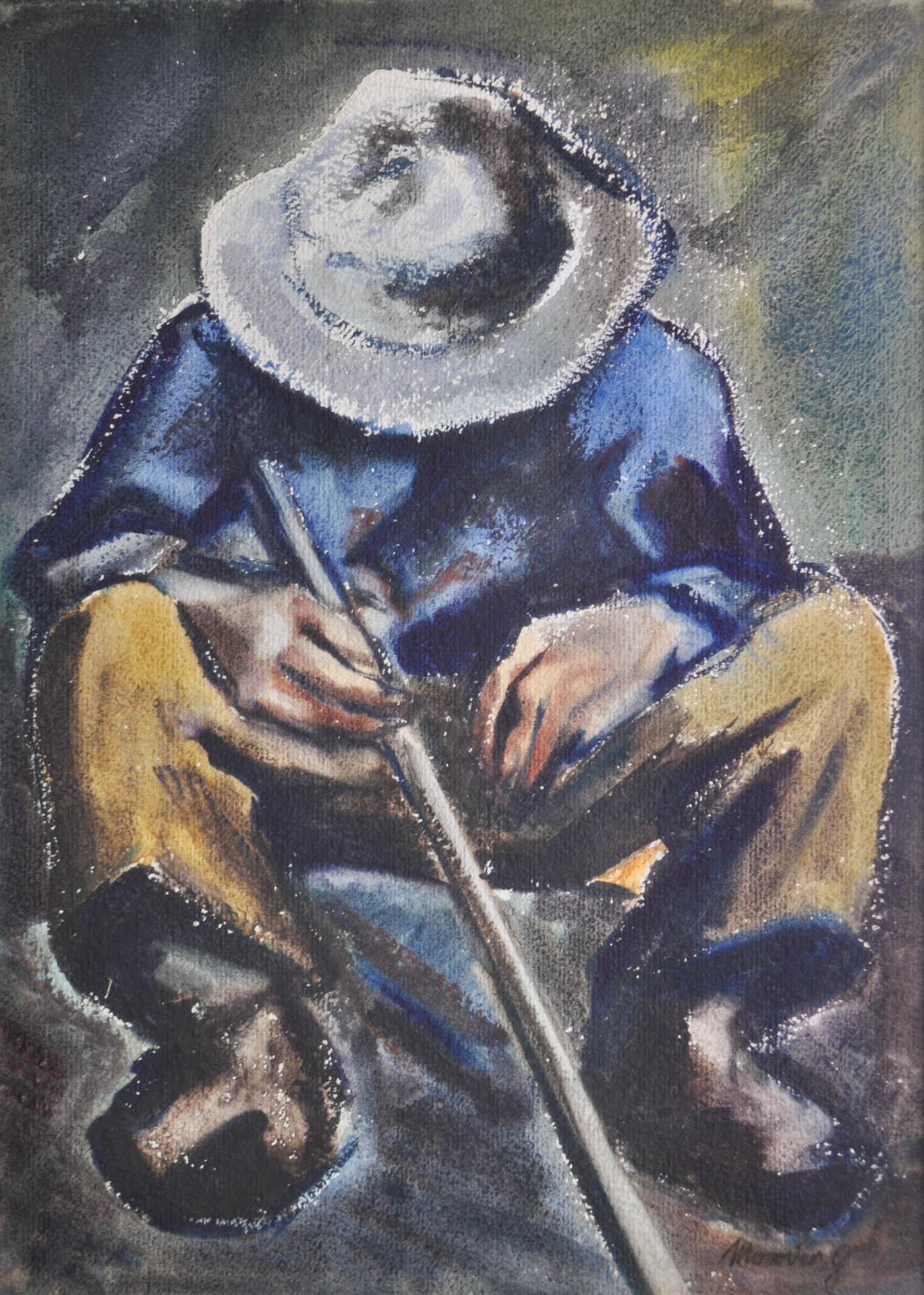 Gottfried Moroder (St. Ulrich in Gröden/Ortisei 1921 - 2016) Pastore che riposa;Tempera su carta, 63 x 45 cm, in cornice