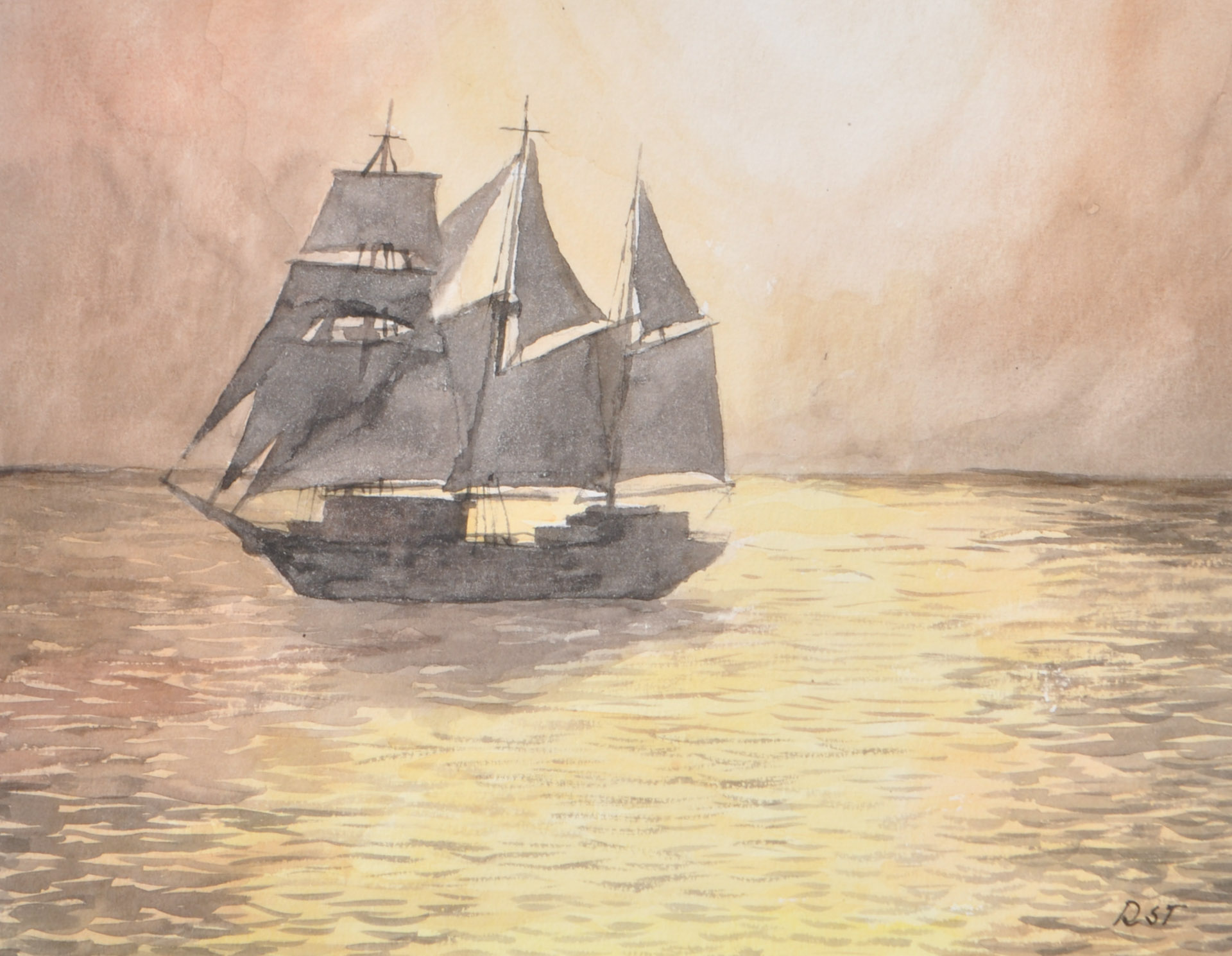 Reinhold Stecher (St. Valentin auf der Haide 1921 - Innsbruck) Una nave viene da noi, 2007;Acquerello, 21 x 27 cm, in cornice
