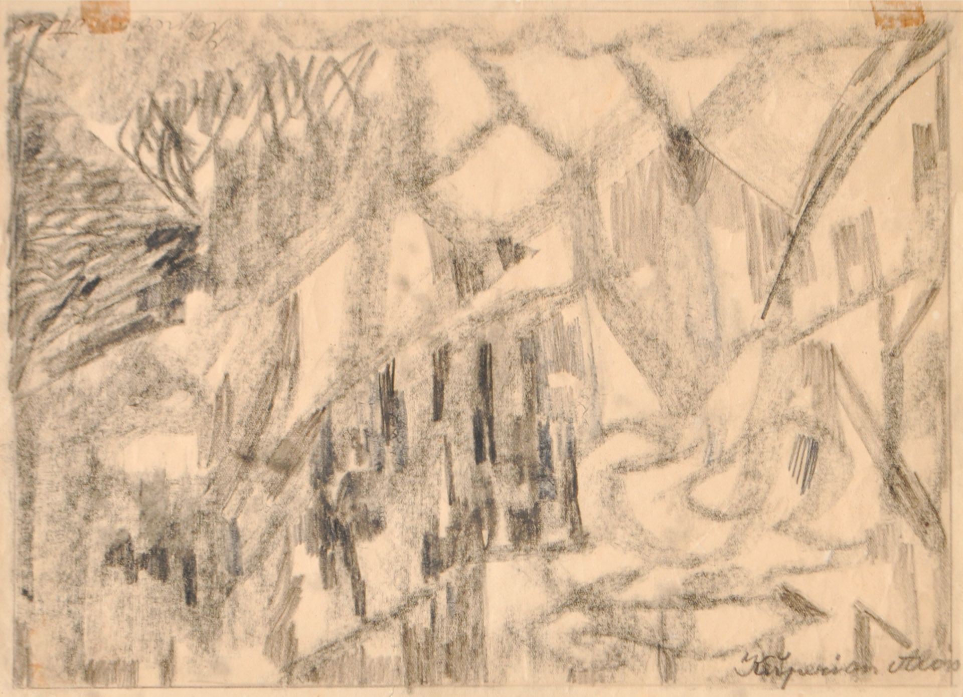 Alois Kuperion (Tarsch/Tarres 1891 - Meran/Merano 1966) Senza titolo;Carboncino, matita, 20,5 x 28,5 cm, in cornice