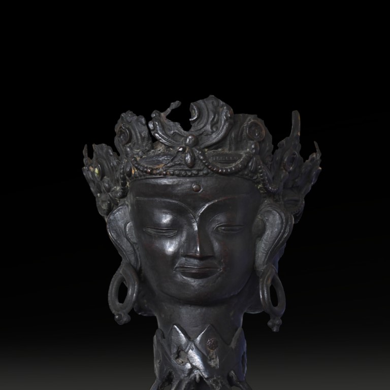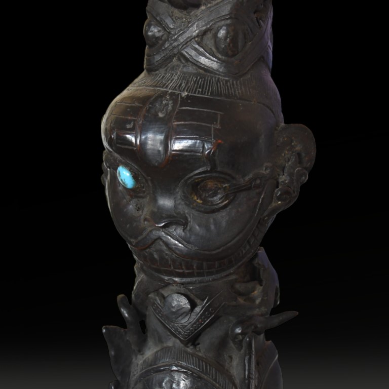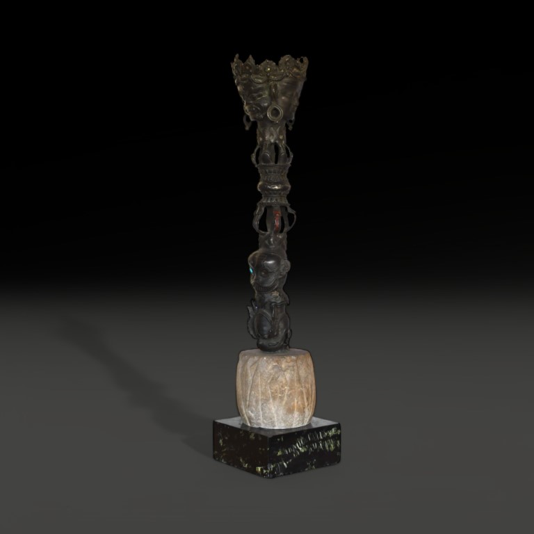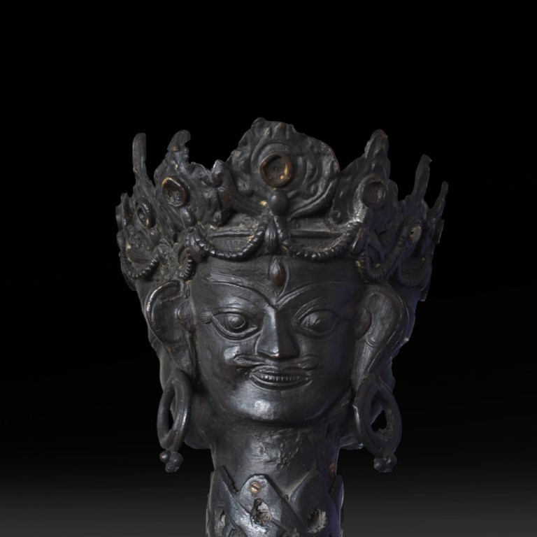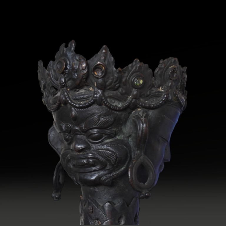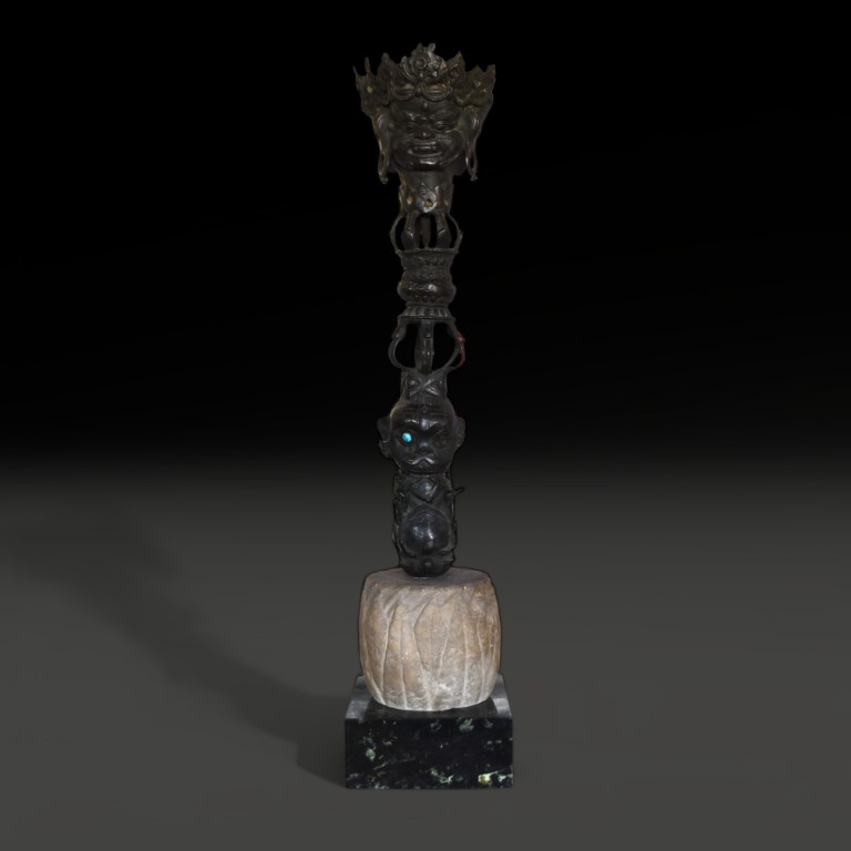A large cast bronze handle of a ritual knife phurba. Probably for templar use.