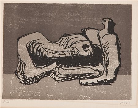 Henry Moore (Yorkshire 1898 - Contea dello Hertfordshire 1986) SENZA TITOLO Litografia su carta, cm. 26,5x35,5, es. 3/75 L'Opera è stata stampata dallo "Studio Curven", di Londra e costituisce la suite "San Lazaro et Ses amis", edita nell'ottobre del 1975 dalla Casa editrice XX Siècle di Parigi - Suite n° 3. Firma in basso a destra, tiratura in basso a sinistra. Provenienza "Graphis Arte", Livorno.