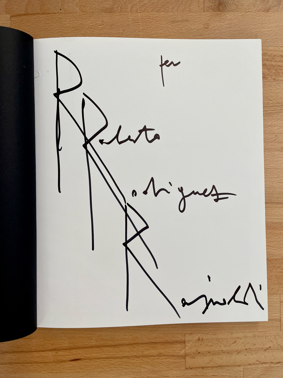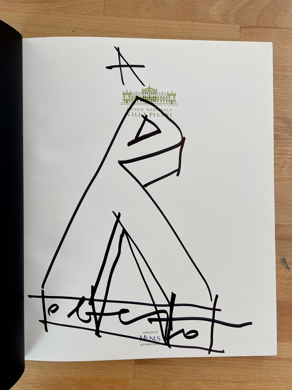Reca disegno dell'Artista, firmato e dedicato, a pennarello nero all'interno