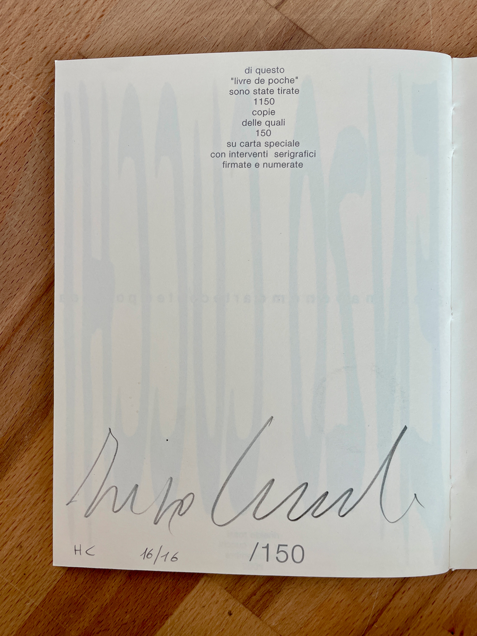 Edizione di 150 copie, parte delle quali firmate e recanti interventi serigrafici