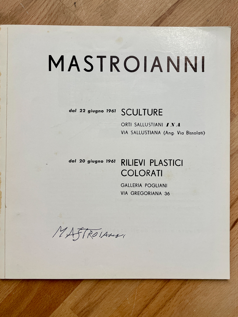 Catalogo riccamente illustrato edito in occasione delle esposizioni tenutesi presso Orti Sallustiani e Galleria Pogliani, Roma, 1961