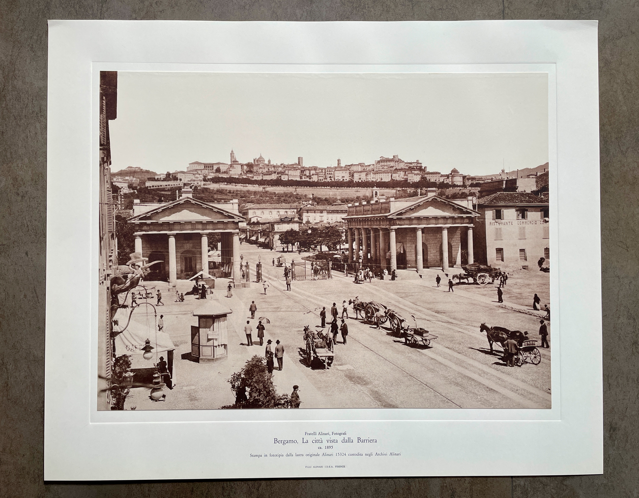 Cartella contenente colophon di presentazione e 9 riproduzioni sciolte stampate con il procedimento della fototipia dalle lastre fotografiche originali custodite negli Archivi Alinari e del Touring Club Italiano (raffiguranti le città lombarde di Como, Mantova, Cremona, Bergamo, Sondrio, Brescia, Pavia, Varese, Milano)