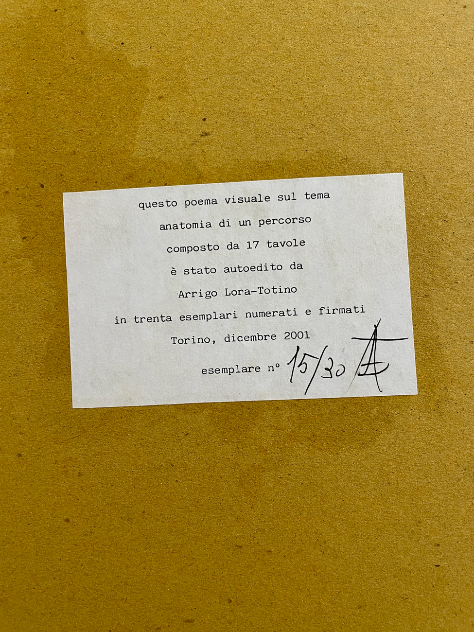 Edizione d'arte contenente un poema visuale sul tema 'Anatomia di un percorso' composto da 17 tavole