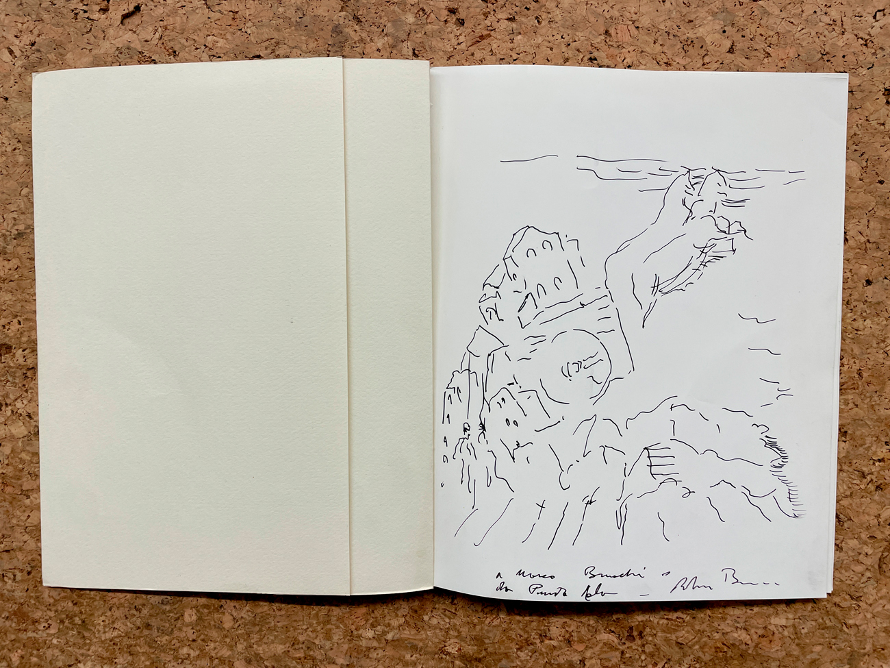 Reca disegno dell'Artista, firmato e dedicato, a pennarello nero all'interno