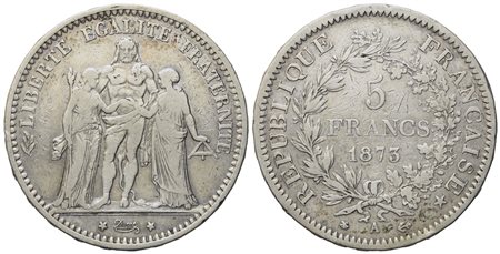 FRANCIA. Terza Repubblica (1871-1940) 5 Franchi 1873. Parigi. Ag (24,73 g; 37 mm)
